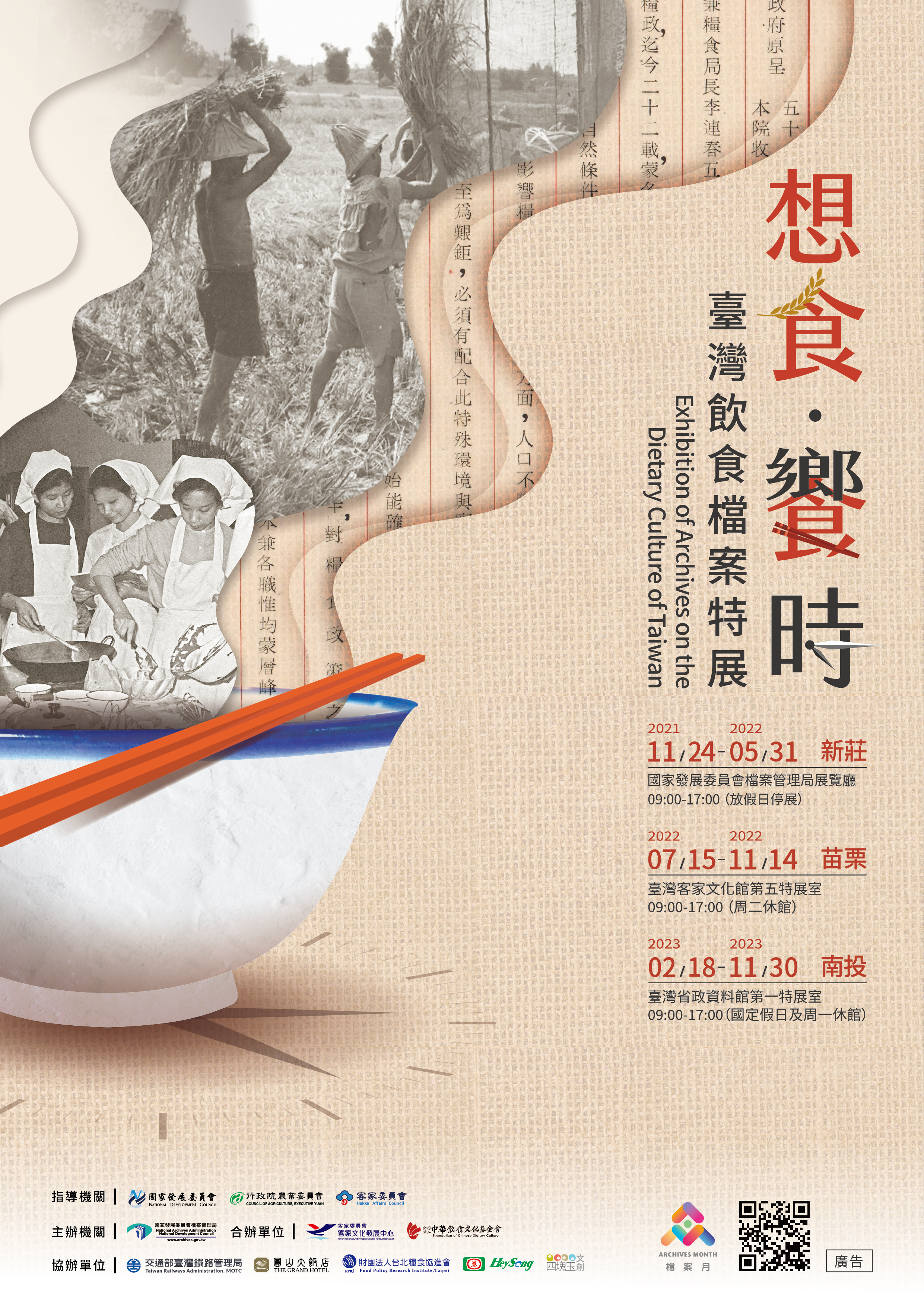 一、為推廣國家檔案應用,國家發展委員會檔案管理局研析重要政府政策以回顧臺灣飲食發展,於本(110)年至112年與客家委員會客家文化發展中心、財團法人中華飲食文化基金會合辦旨揭特展。本特展各展次資訊如下: