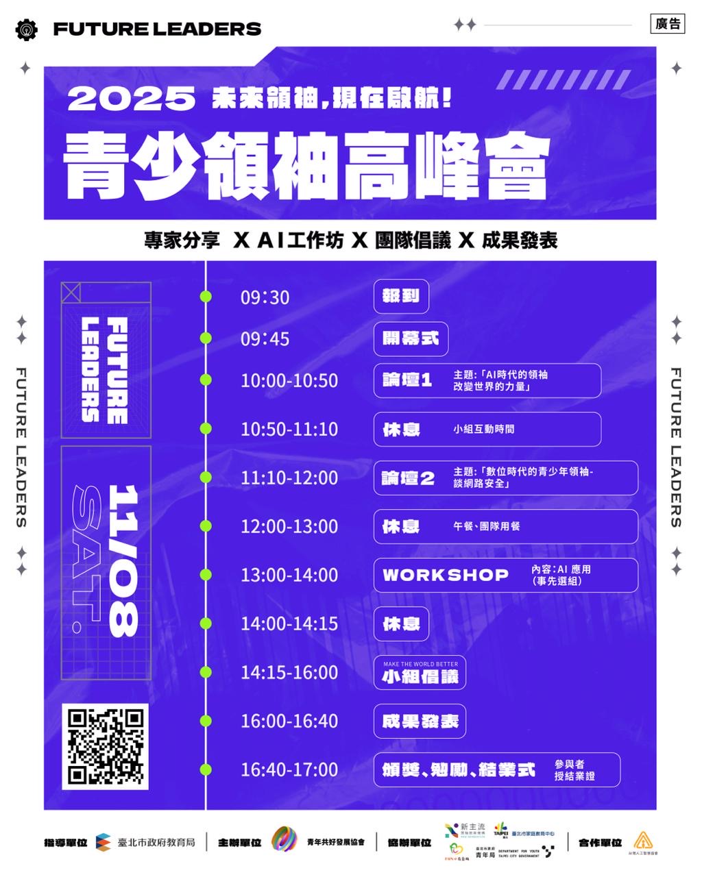 活動旨在引導少年瞭解AI趨勢,提升社會與國際視野 並協助孩子找到自我價值、穩健成長。相關報名資訊如下