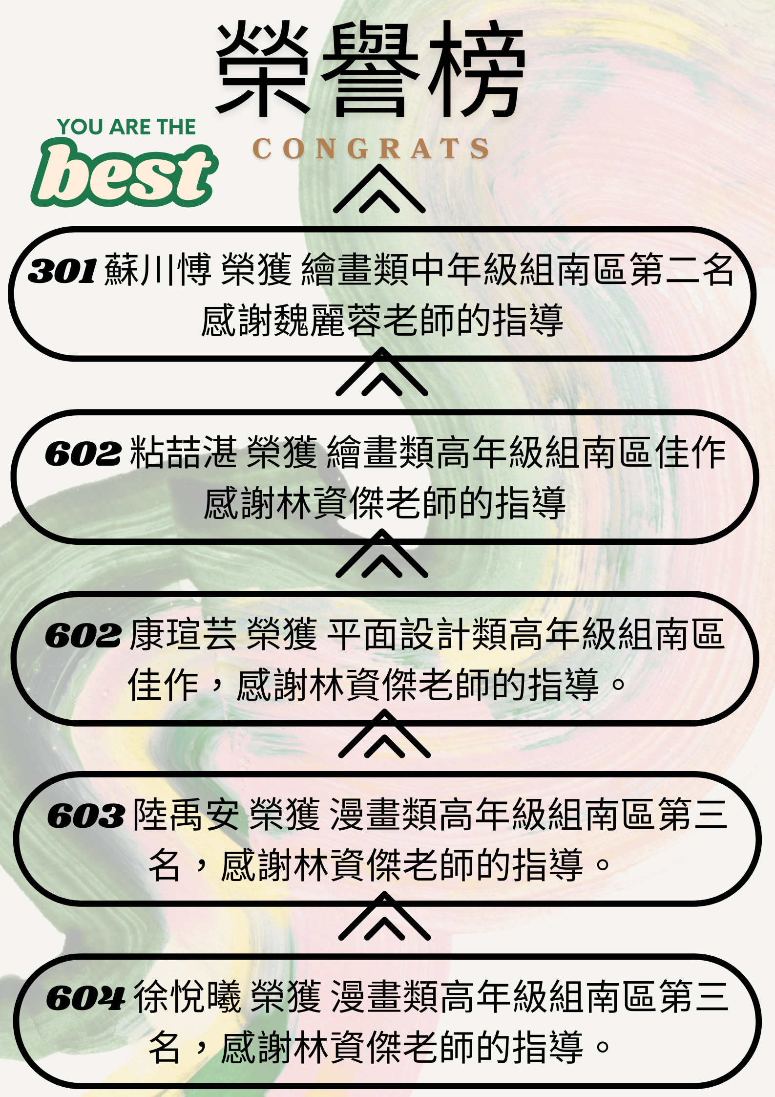 六年2班 康瑄芸 榮獲 平面設計類高年級組南區佳作,感謝林資傑老師的指導。